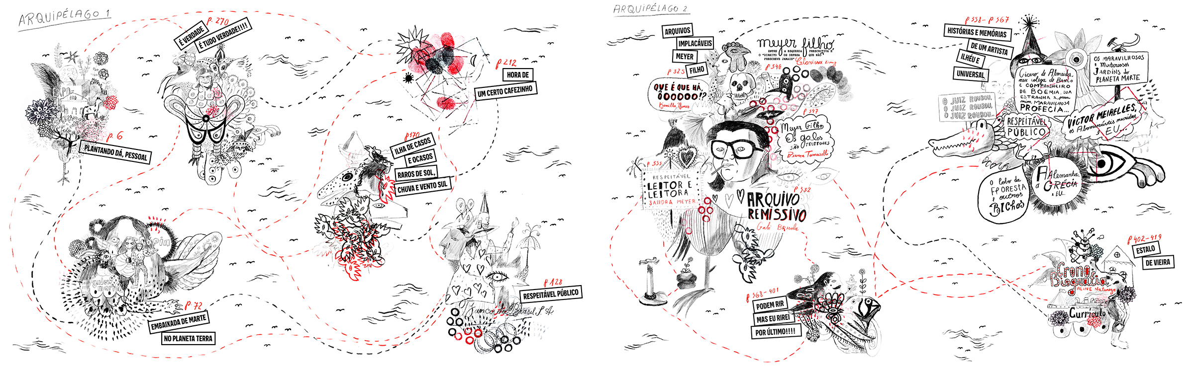 Algumas perguntas simples, mas de respostas complexas, norteiam este arquipélago: Quem foi Meyer Filho?; O que ainda não foi dito sobre Meyer Filho?; Que textos, imagens, histórias e depoimentos ainda não vieram a público?; Que outras coisas poderão ser criadas, articuladas e remontadas a partir destas ilhas? Meyer Filho criou uma linguagem marciana para nós, meros terráqueos, e o que pretendemos com esta exposição é abrir alguns feixes de luz para que sua obra seja vista por lentes estéticas, gelatinosas, multifocais, côncavas e convexas, mas também de contato. Por isso, os títulos das ilhas–planetas foram apropriados de seus escritos, são frases que ele utilizou em diferentes contextos: PLANTANDO DÁ, PESSOAL!; QUEM FALOU QUE OS ANJOS NÃO TÊM SEXO?; EMBAIXADA DE MARTE NO PLANETA TERRA; RESPEITÁVEL PÚBLICO; ILHA DE CASOS E OCASOS RAROS, DE SOL, CHUVA E VENTO SUL; HORA DE UM CERTO CAFÉZINHO e É VERDADE! É TUDO VERDADE!!!!