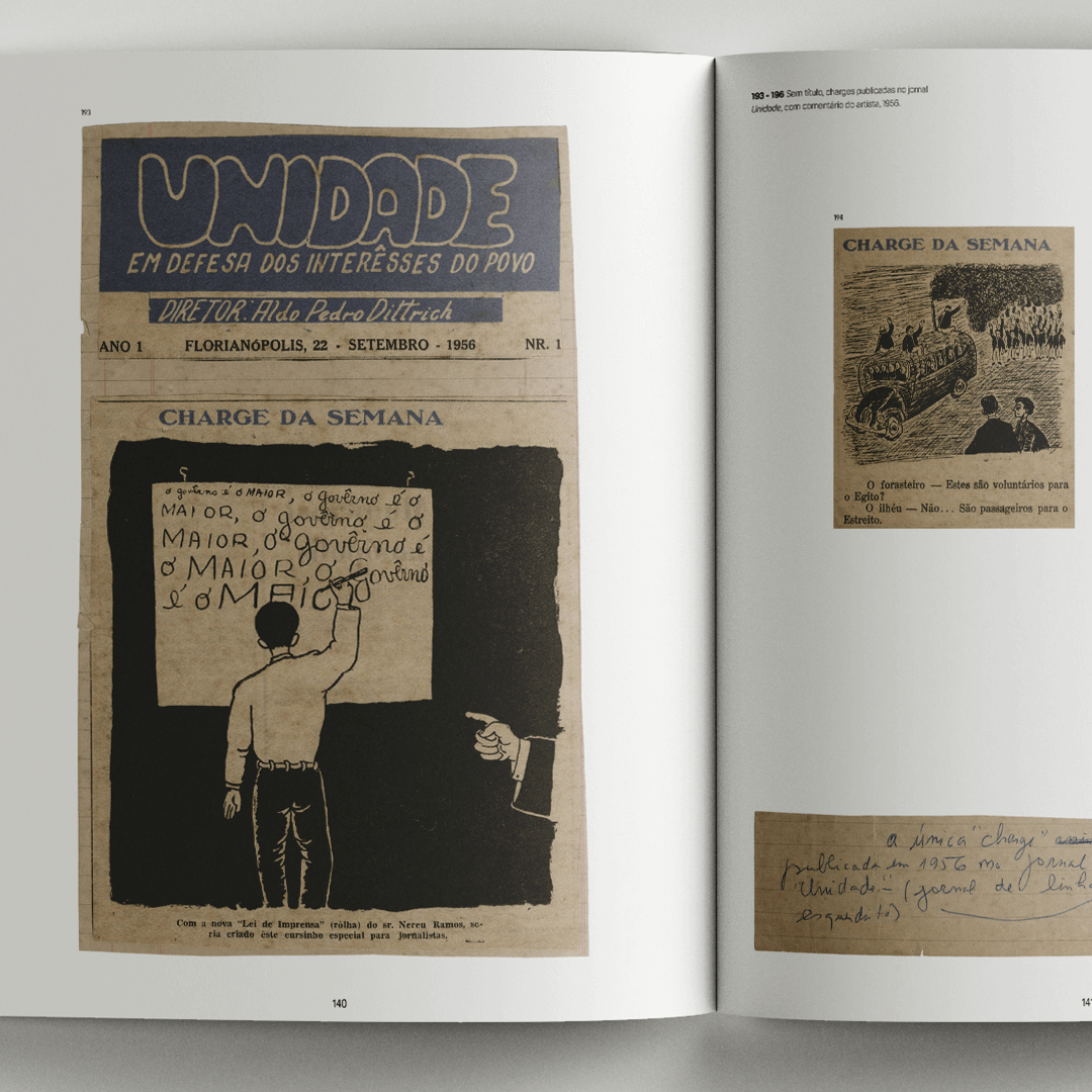 Organizado por Gabi Bresola e Kamilla Nunes, tem o projeto gráfico de Vanessa Schultz com capa e ilustrações de Pedro Franz. Possui duas partes: a primeira formada por 6 ilhas onde estão dispostas reproduções de arquivos e obras; e a segunda formada por uma seleção de textos críticos sobre a obra do artista publicados em jornais de diferentes épocas, textos do próprio artista, textos de Kamilla Nunes, Clarissa Diniz, Bianca Tomaselli, Sandra Meyer e Gabi Bresola e uma cronobiografia e currículo elaborados por Aline Natureza.